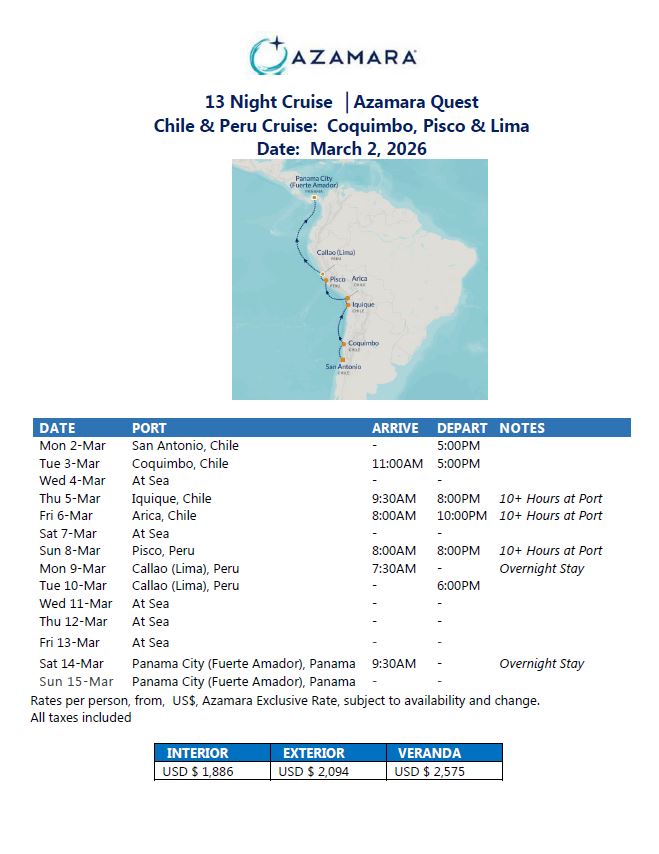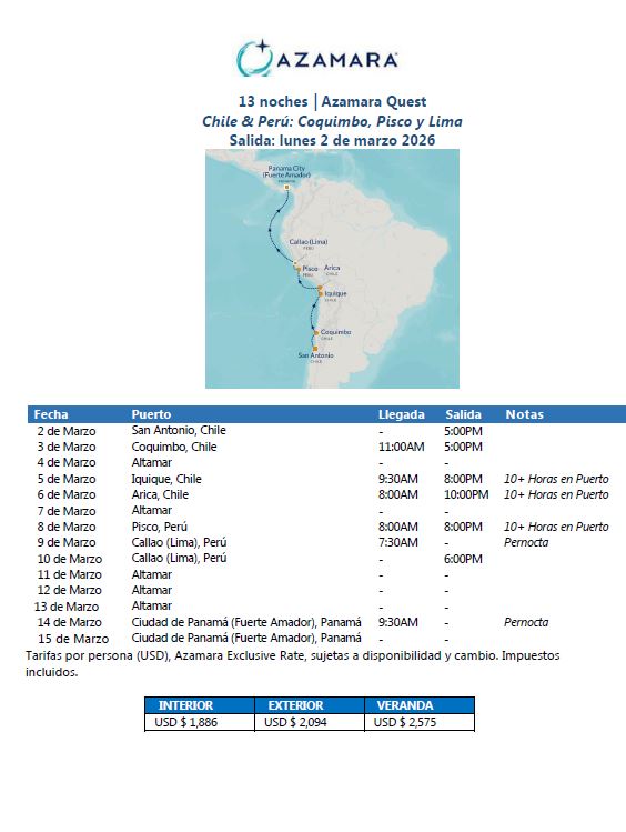 Operated by Viajes Dumbo, a trusted partner of Princess since 1995
